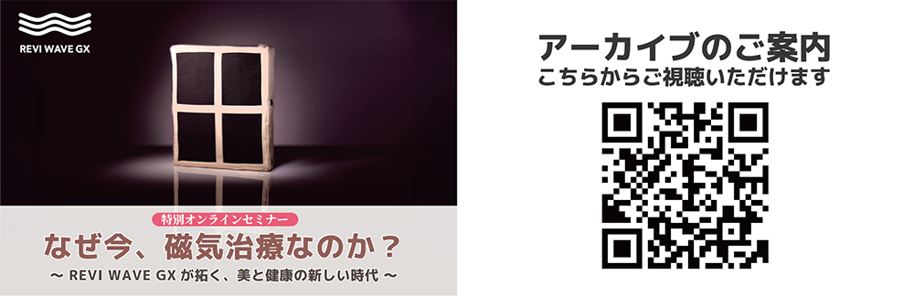 9月28日(日)と10月6日(月)、2回にわたりオンラインセミナー「なぜ今、磁気治療なのか?~REVI WAVE GXが拓く、美と健康の新しい時代~」を開催いたしました。