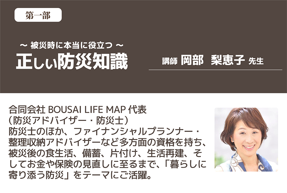第1部では、被災時に本当に役立つ「正しい防災知識」を岡部梨恵子先生から直接学び、