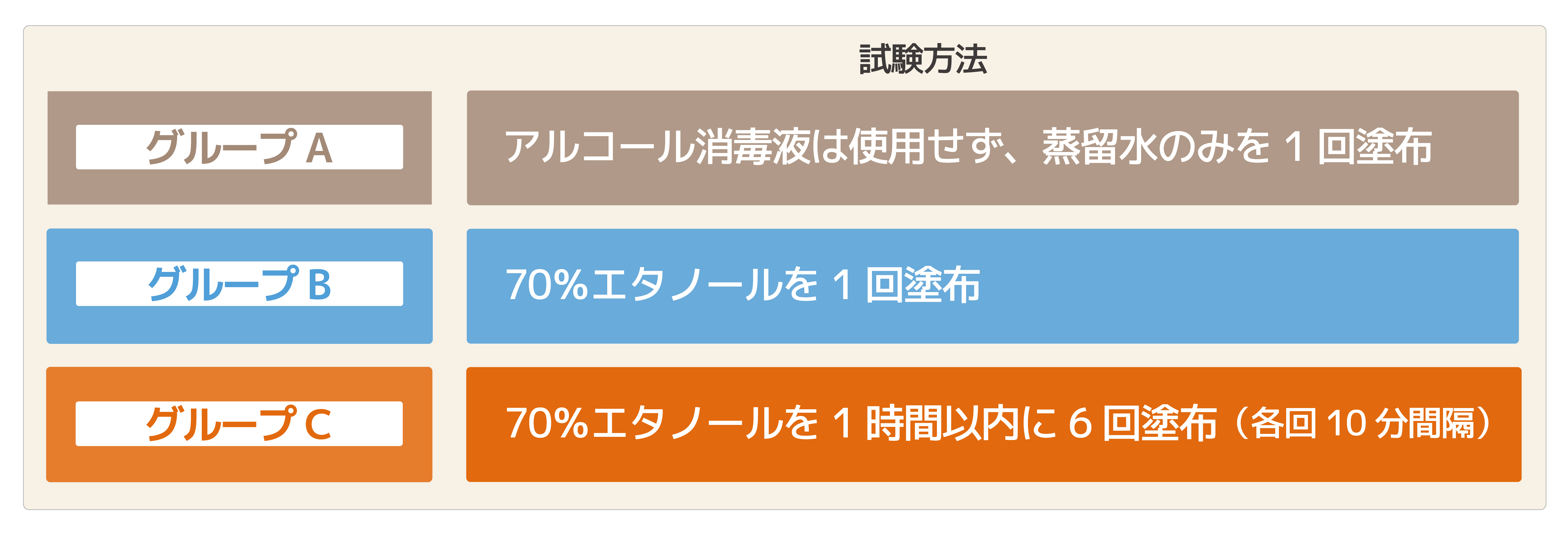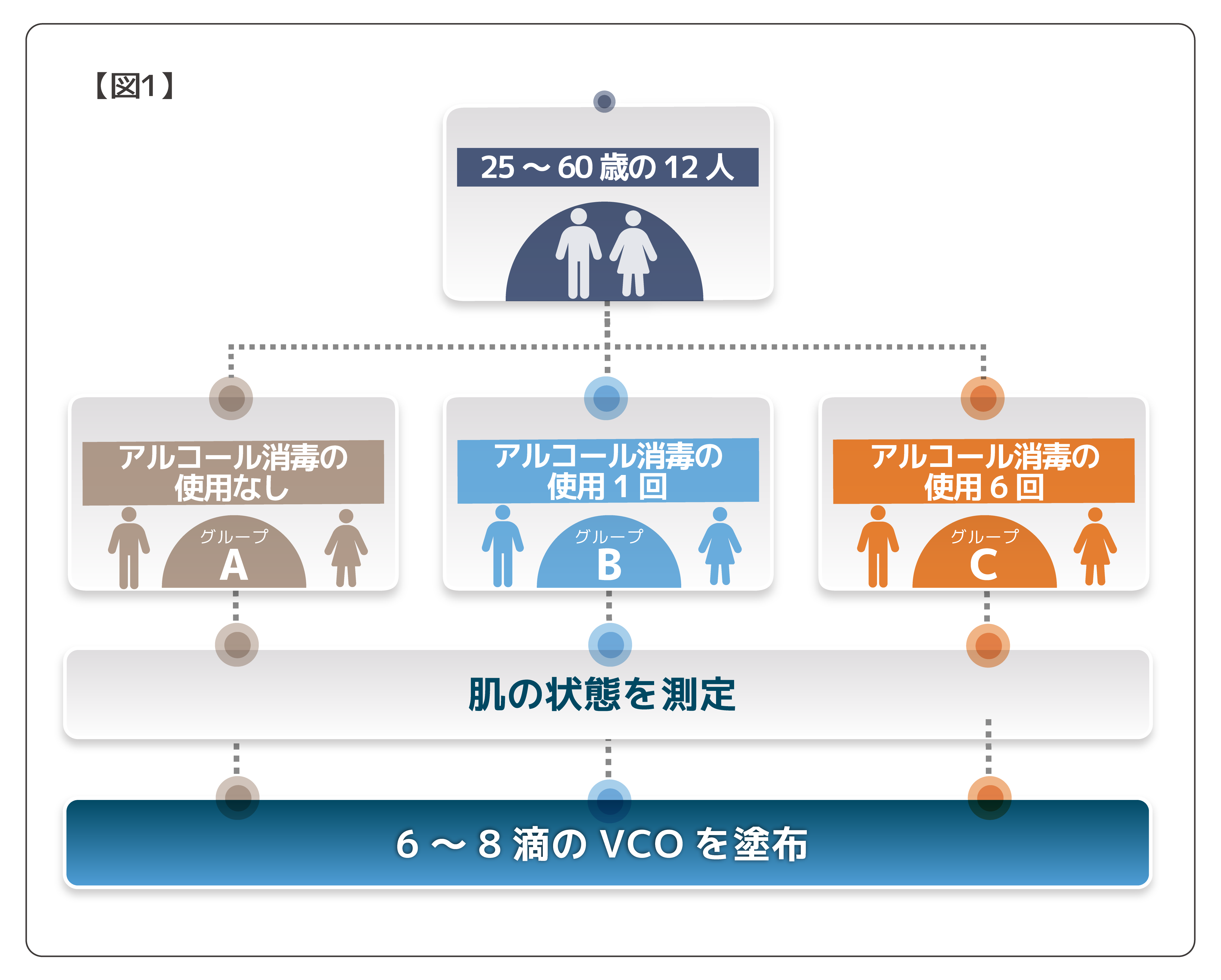 特別な皮膚疾患を持っていない、健康な25〜60歳の12人を対象に、3つのグループに分けられました。