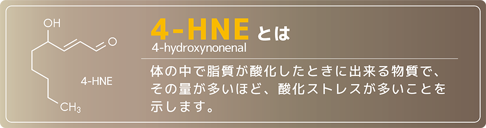 細胞の中で起こる”酸化ストレス”(体のサビ)を確認するため、4-HNEという物質の量を調べました。