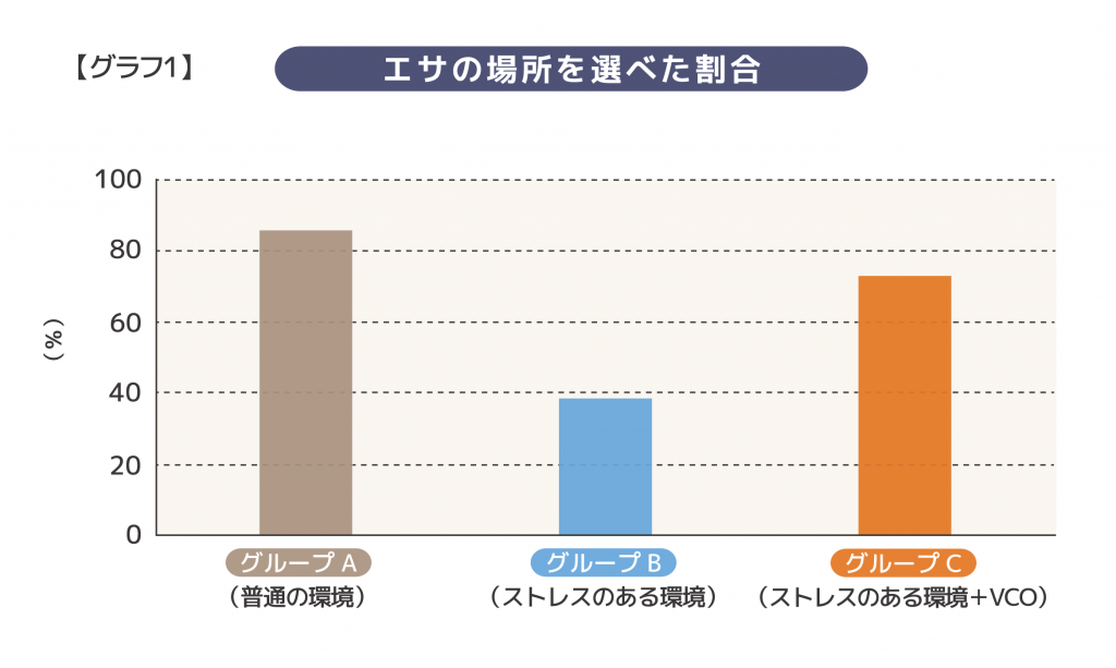 一方で、VCOを与えたグループCはこのミスが少なくなっており、エサの位置を長く覚えておく力が守られていました。