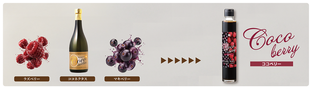 ココネクタスに「ラズベリー」と「マキベリー」という二つの濃縮果汁をブレンドした華やかで特別な発酵アミノ酸ドリンクです。